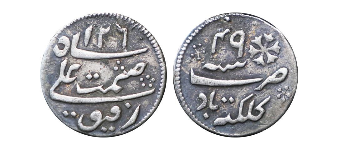 Token, Imitating Bengal Presidency Quarter Rupee, Silver 2.97 gms, Obv. Rafeeq Hasmat Ali Shah 1206, Rev. sana 49 zarb Kalkattabad, very fine, very scarce.