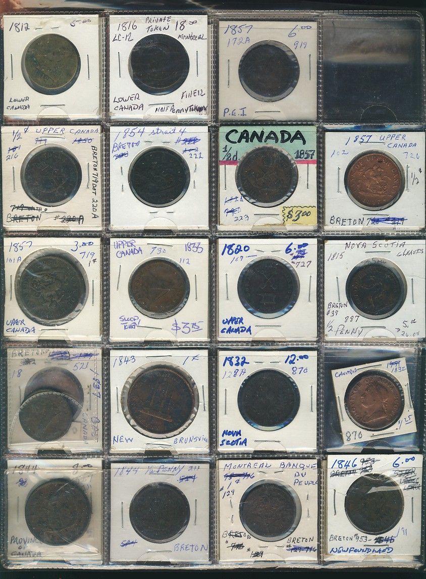Token Lot. Lot includes 36 Canadian pcs, mixture of Lower/Upper Canada & Maritimes tokens. All common issues VG to VF.