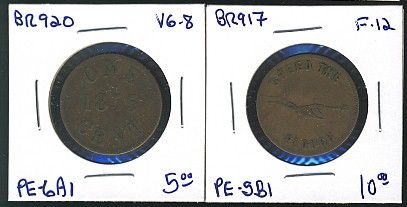 Token Lot; PE-5B1 in F-12 & PE-6A1 in VG-8. Lot of 2 tokens.