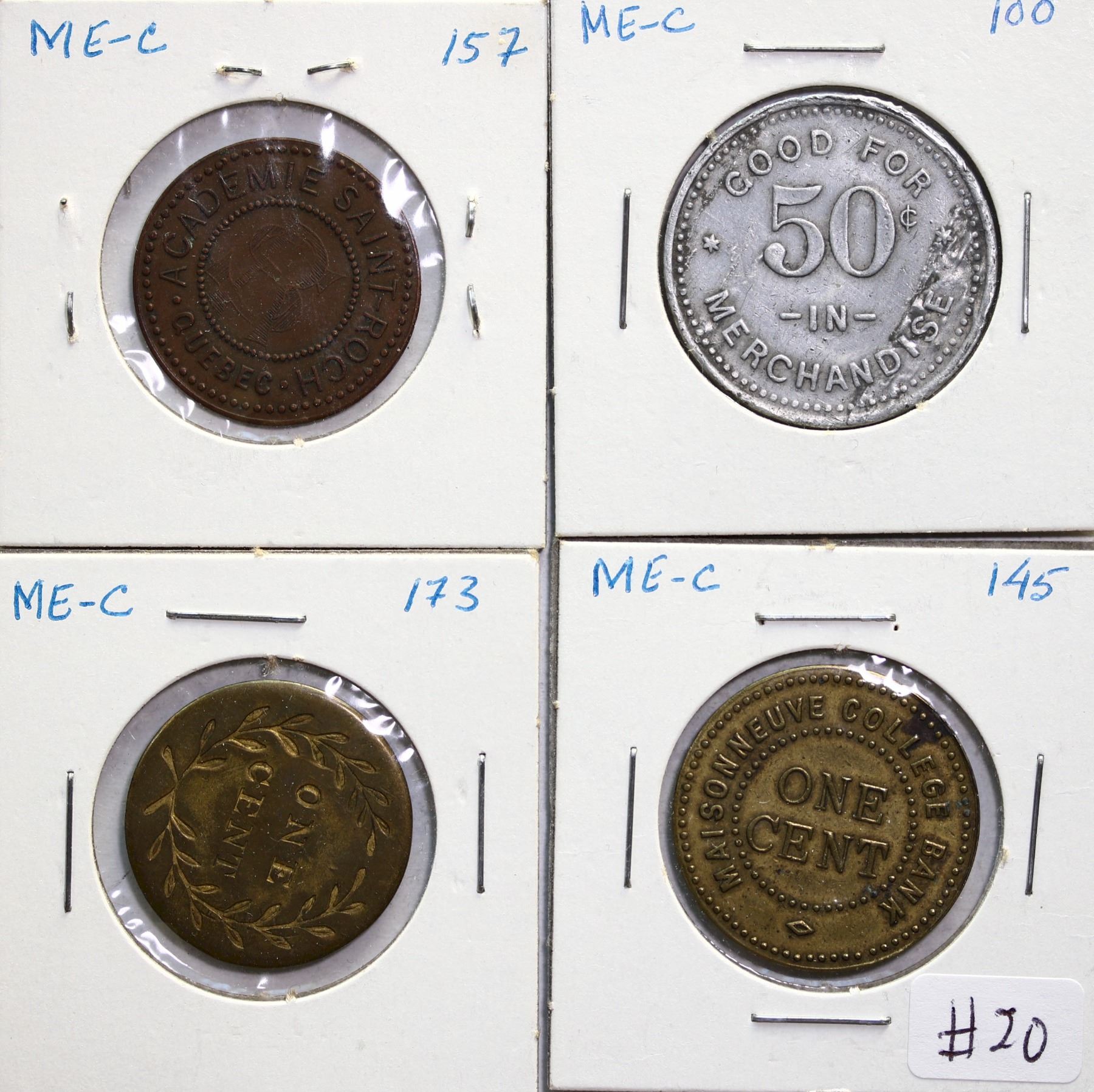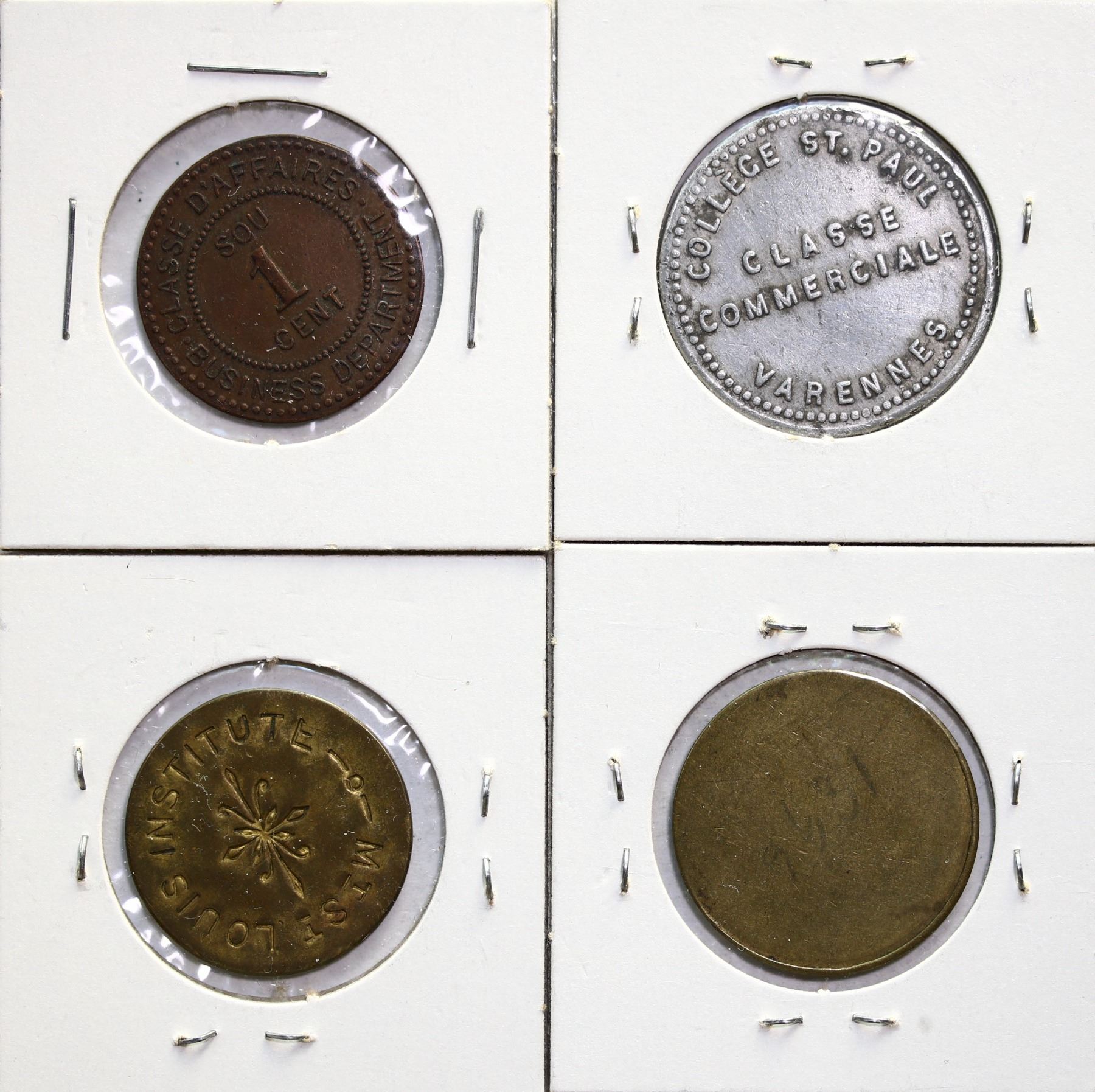 Token Lot; Quebec colleges, some are believed to be scarce. Lot of 4 pieces.
