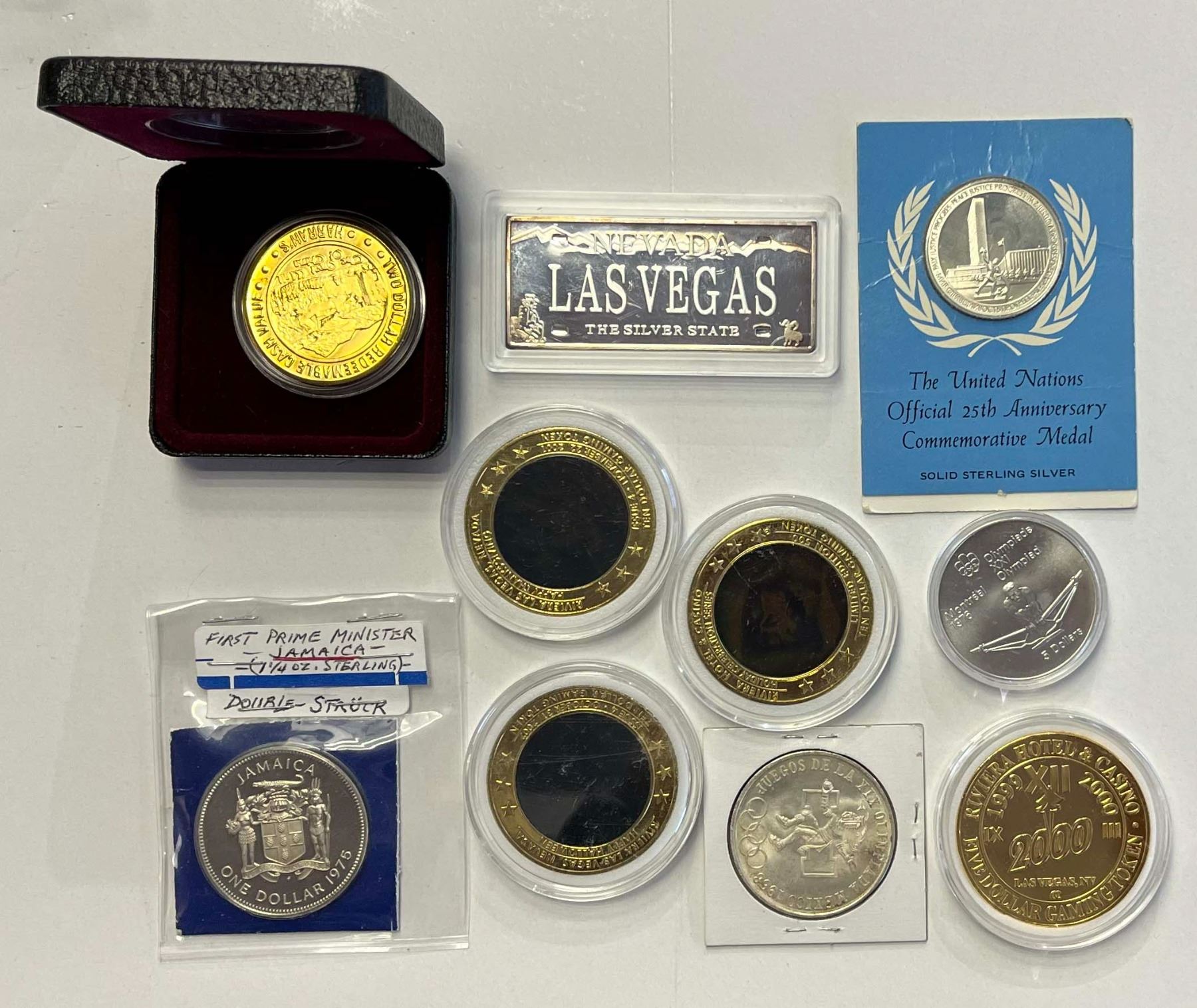 Token / Medallions; includes Gaming Tokens & some silver coinage. Lot of 10 pcs. .