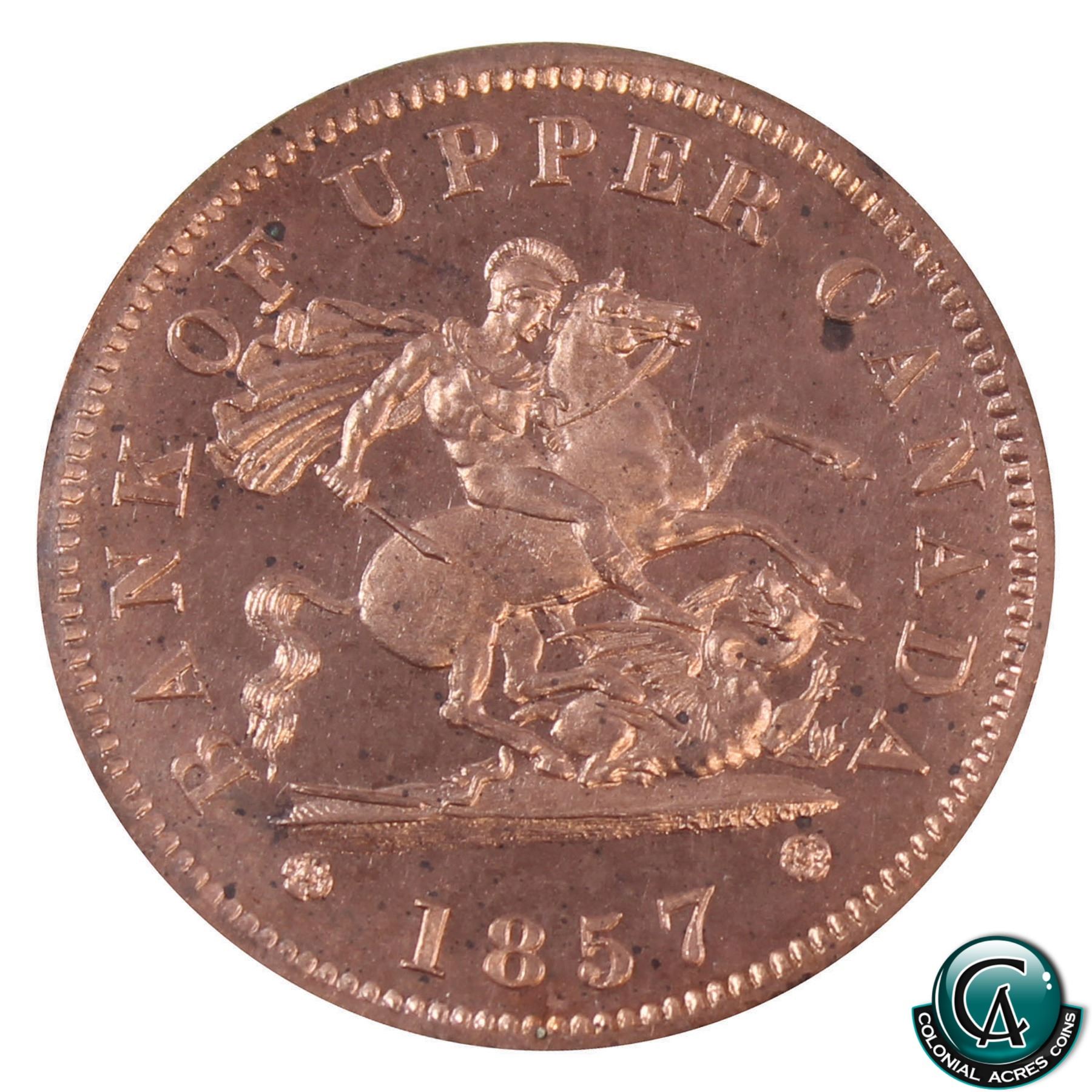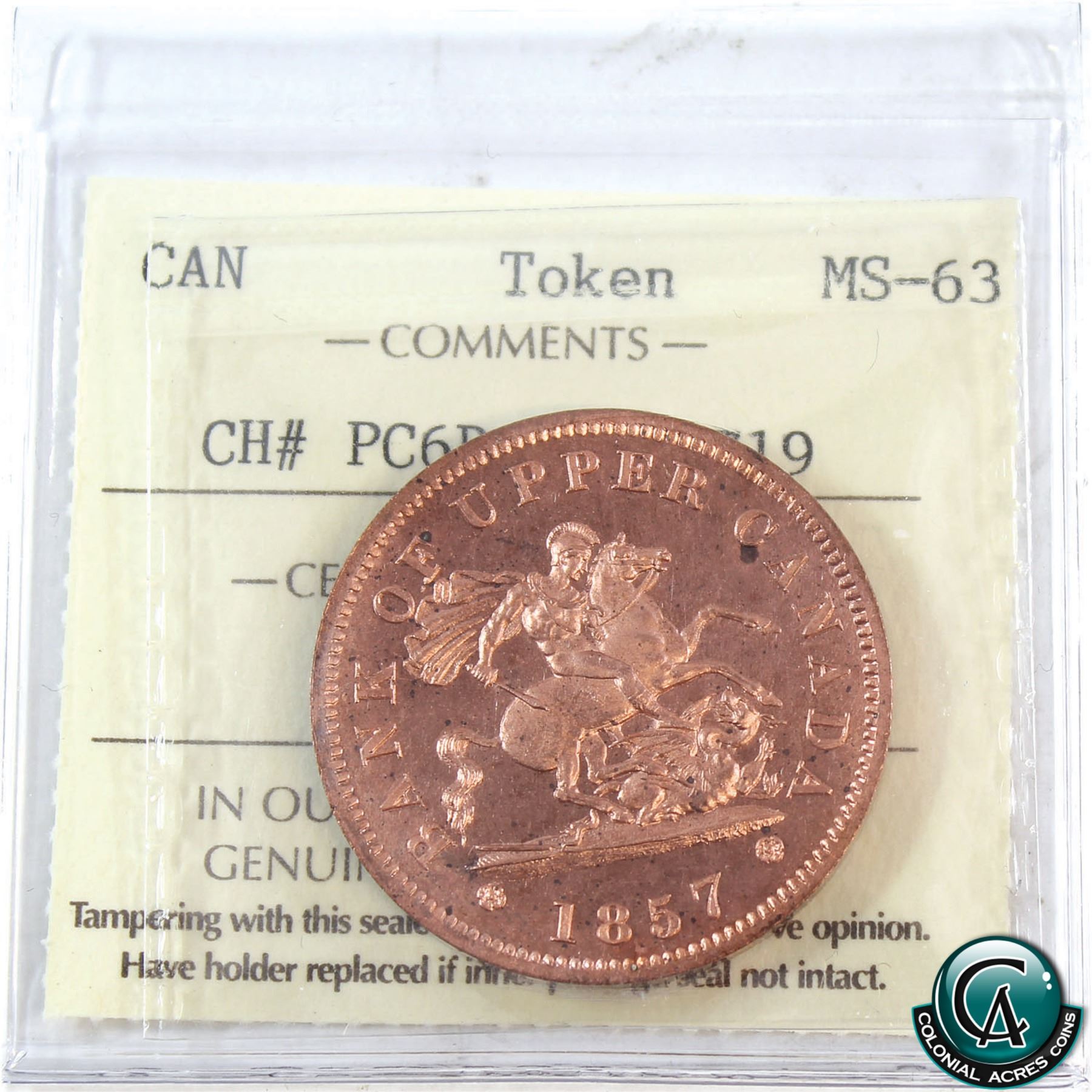 Token PC6D, Upper Canada 1857 One Penny BR# 719 ICCS Certified MS-63.