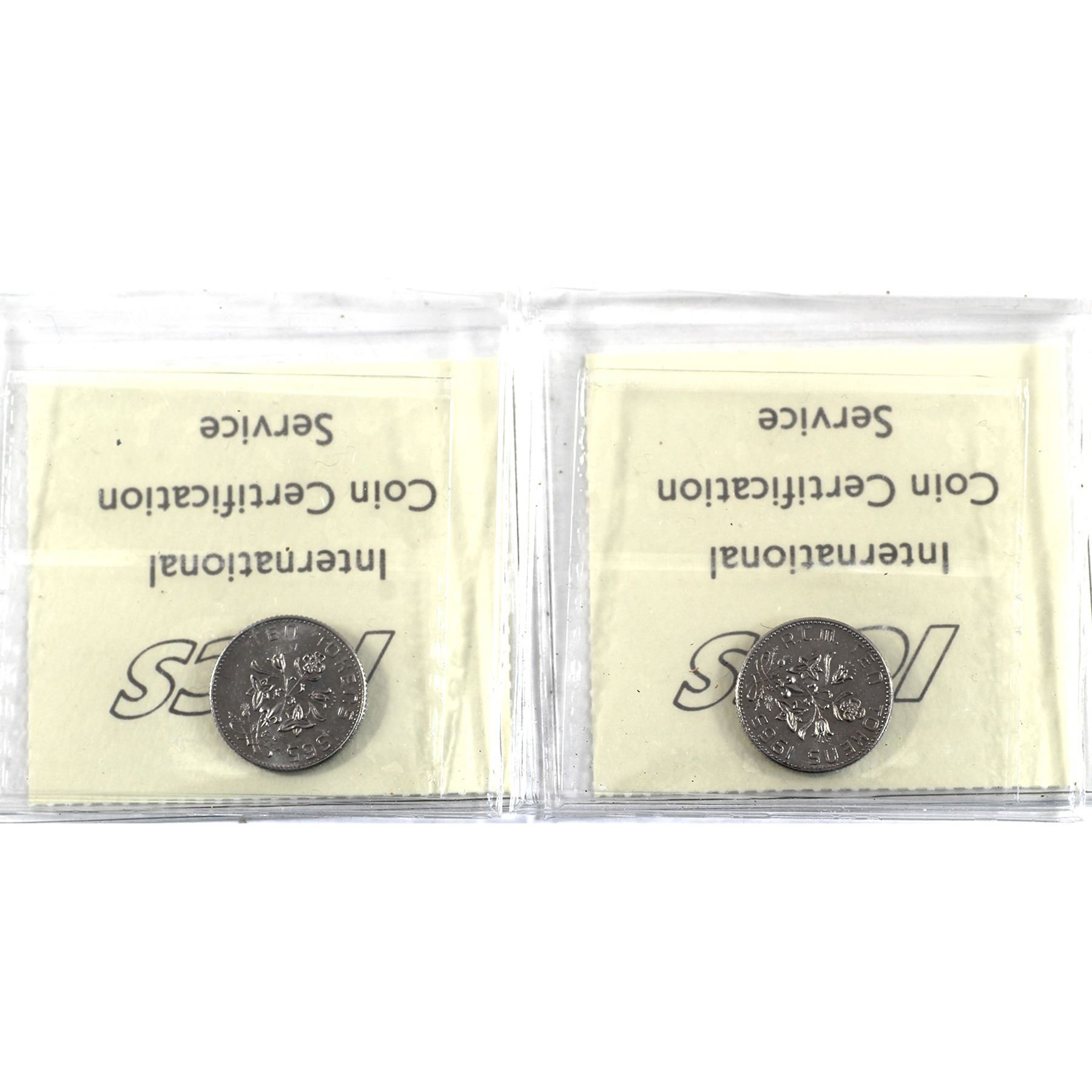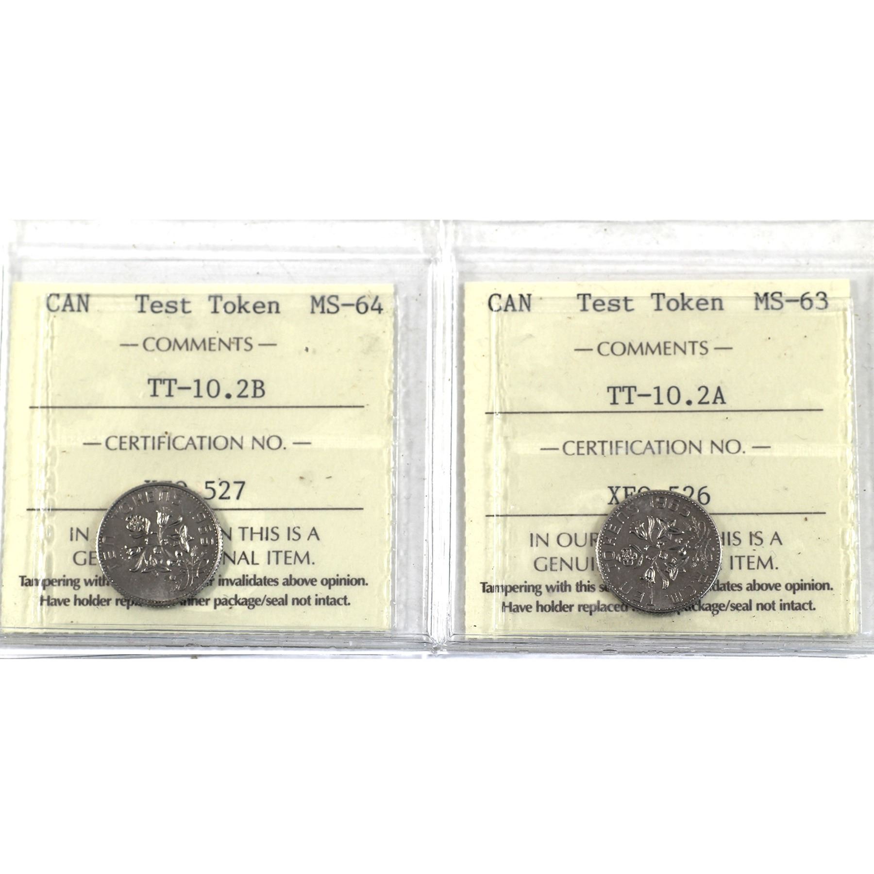 Token: Pair of 2 1965 10-cent Test tokens TT-10.2A MS-63 & TT-10.2B MS-64 Both ICCS Certified (2pcs)