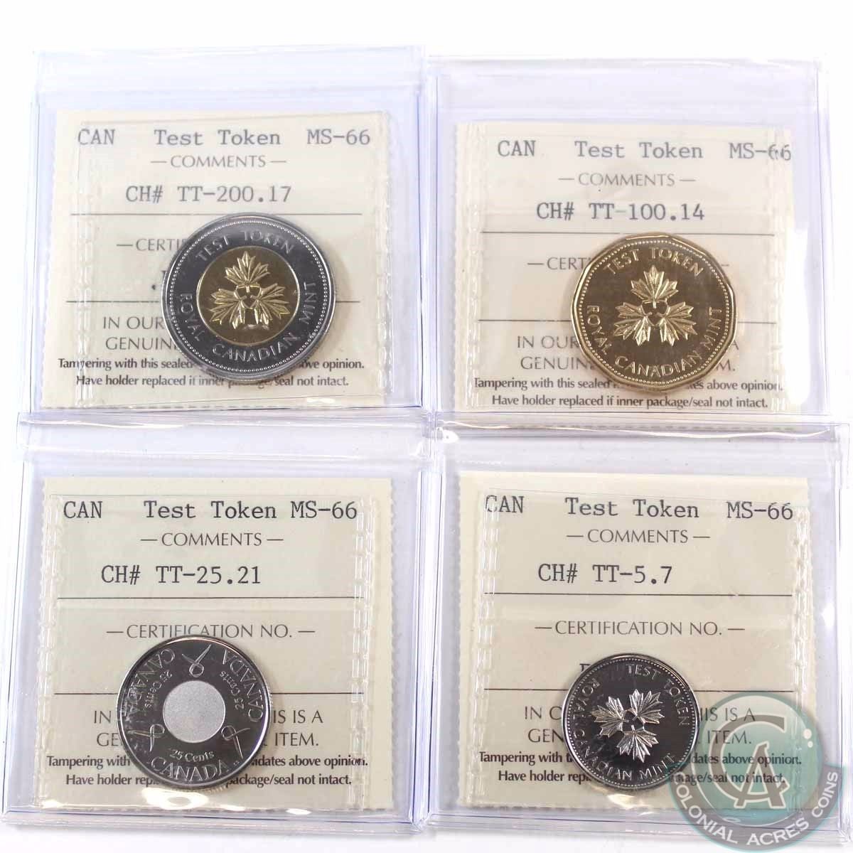 Tokens: CH# TT-5.7, CH# TT-25.21, CH# 77-100.14 & CH# TT-200.17 ICCS Certified MS-66. 4pcs