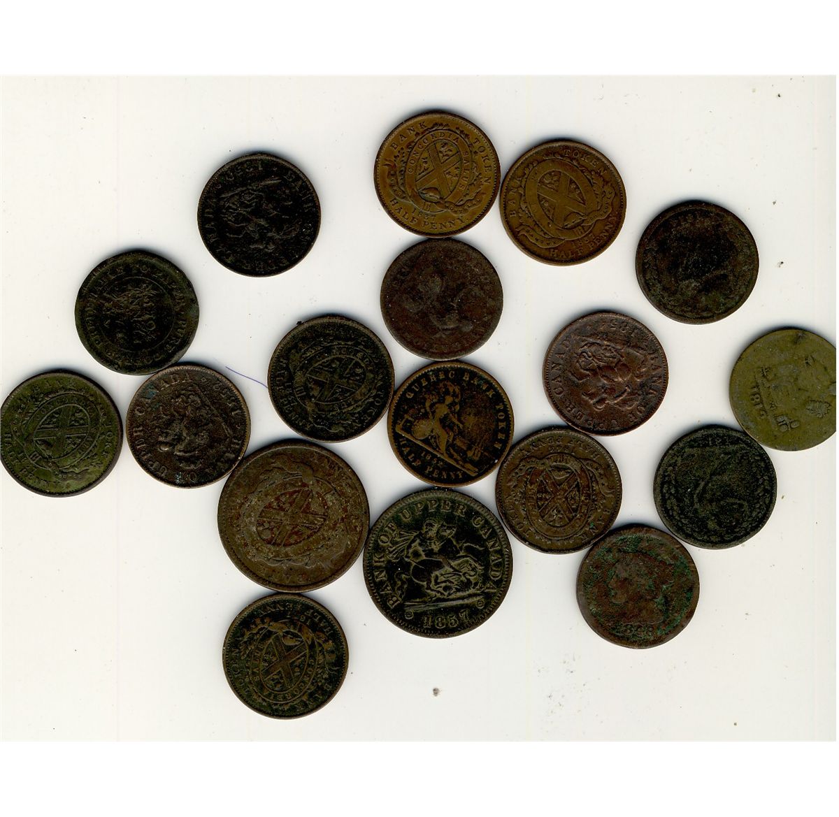 Tokens; Lot of 18 common Province of Canada, Upper Canada and Lower Canada issues. Good to Fine, some with problems.