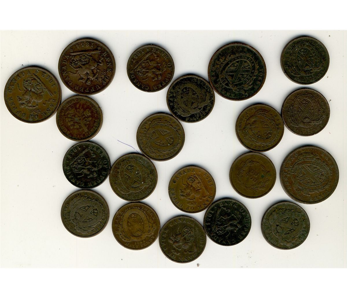 Tokens; Lot of 20 Canadian Colonial Tokens, mainly Upper Canada & Province of Canada issues VG to VF.