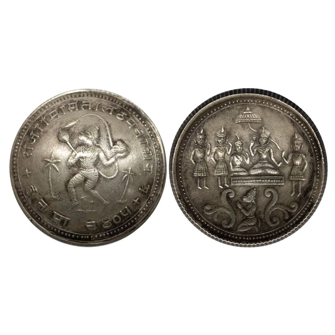 Tokens, Ram Darbar Silver Token, Cup Shaped, obv: hanuman ji and legends around, rev: ram darbar scene.