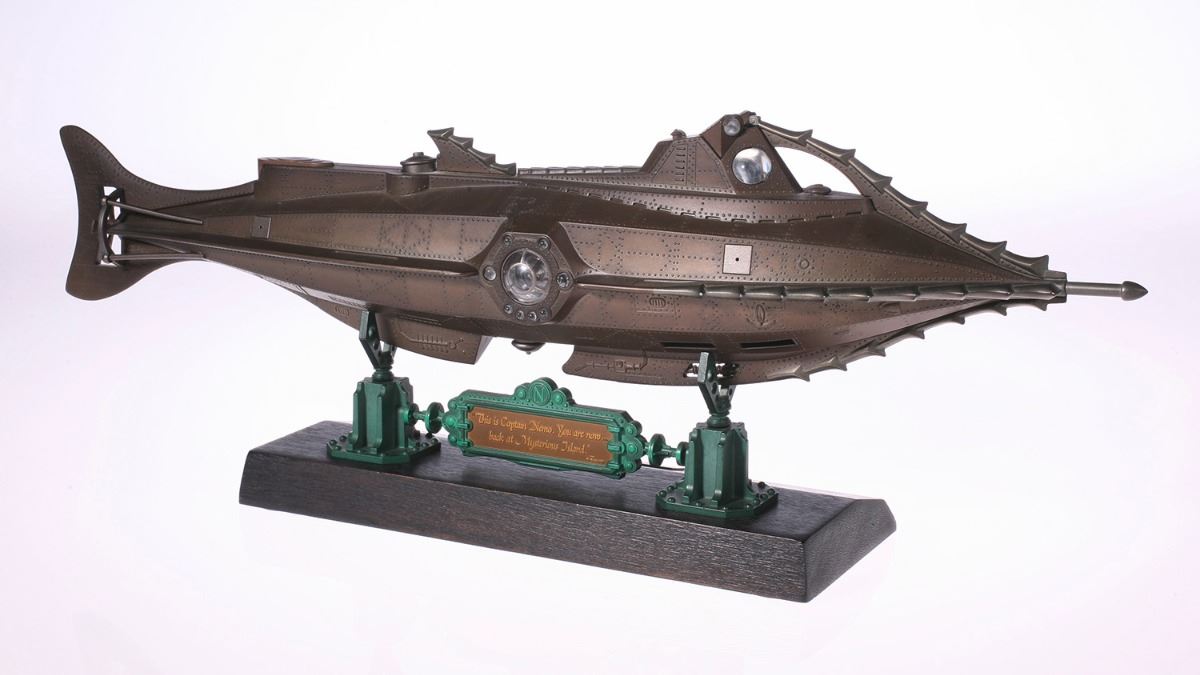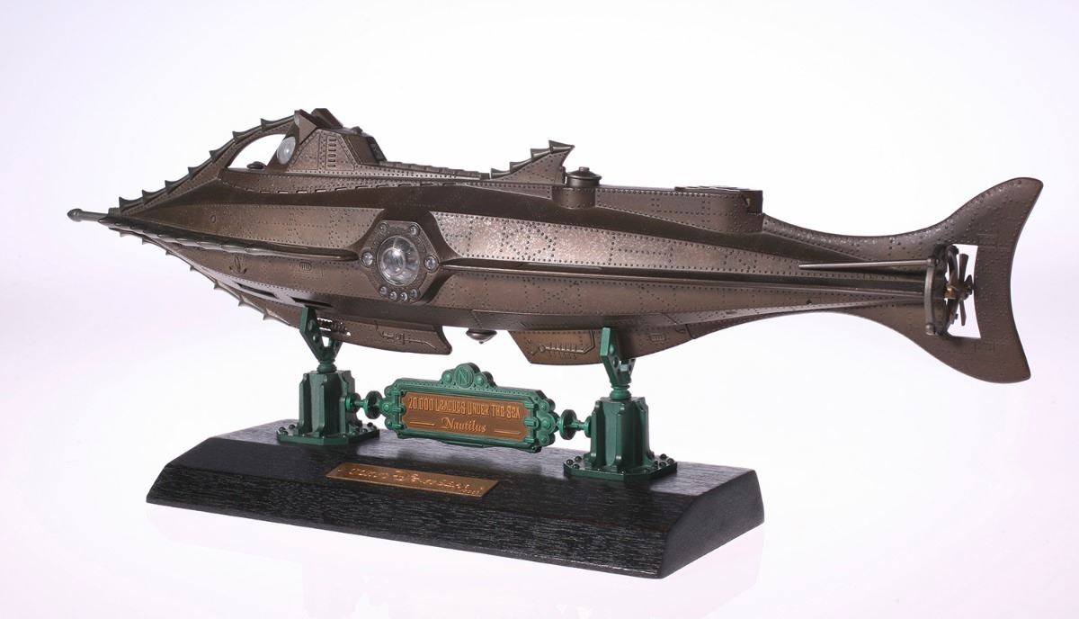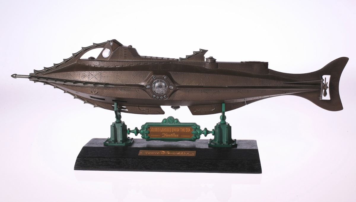 (Tokyo Disneyland, 2001) Limited edition 1/87 scale model of the Nautilus Submarine released in 2001 as part of the grand opening of the DisneySea resort. The resin and metal sculpture was limited to 2000 pieces. Comes in original box with stand and certificate of authenticity. Measures 15.5"x3"x3.5". In fine condition.