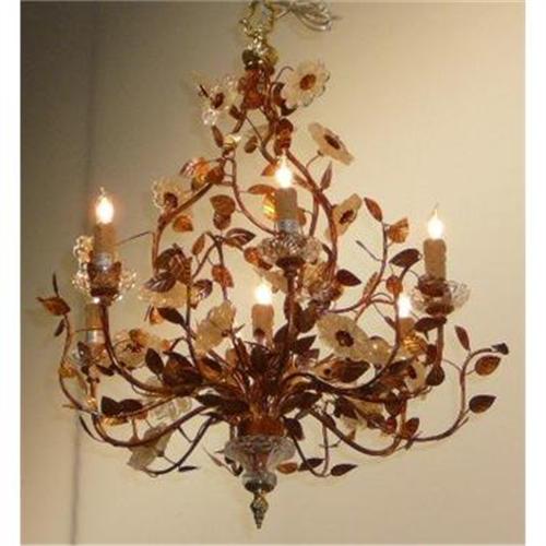This is a beautiful tole chandelier with glass flowers and six candlestick lights. It is wired to USA Code.