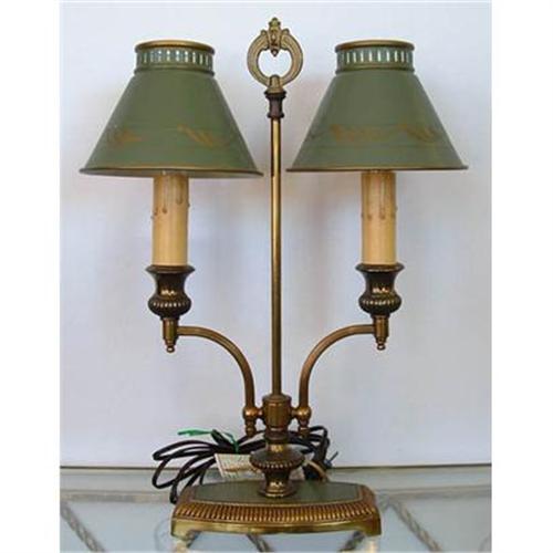 Original green finish with brass, completely rewired with all new parts. Ready to set on your desk. Shades are original. 14.5 inches Hight , piece located in Alabama