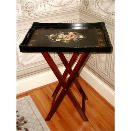 <tr><td>Title:Tole Tray Table Large Wood Hand Painted</td></tr>