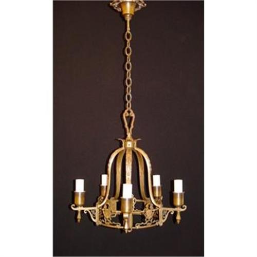 Circa 1920 Tole bronze five light chandelier chandelier .Curent height 32" diameter 20 ".
