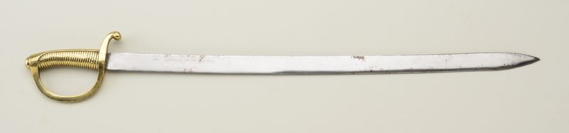 Toledo-marked Spanish Artillery sword dated 1846; blade has been polished and is approx. 32” overall with an approx. blade length of 27-1/4”; could have been used in the Southwest or during the Mexican War; noscabbard. Est.: $125-$250.