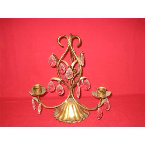 We are offering this beautiful three armed Candleabra with crystal prisms twisted rim aruond the base and loys of leaves.