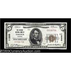 <TABLE cellSpacing=0 cellPadding=0 width="100%" bgColor=#000000 border=0><TBODY> <TR><TD width="100%"><TABLE cellSpacing=1 cellPadding=3 width="100%" border=0><TBODY><TR><TD width="100%" bgColor=#79735c><FONT face=arial color=#ffffff size=3><B>Description</B> </FONT></TD></TR><TR><TD width="100%" bgColor=#ffffff><FONT face=arial size=2><B>Toluca, IL</B></I> - $5 1929 Ty. 1 <B>The Citizens NB</B></I> Ch. # 11333<BR>A very rare note from one of the smallest issuers in the state, whose total emission of Series 1929 notes came to a mere 686 sheets of $5.00 examples. Five notes are reported in the new Kelly census, just two of which are higher grade than Fine, with this specimen one of the two. <B>Choice Crisp Uncirculated,</B></I> a note fit for the finest of collections. (1,250-2,250 ) </FONT></TD></TR></TBODY></TABLE></TD></TR></TBODY></TABLE><BR><TABLE cellSpacing=0 cellPadding=0 width="100%" bgColor=#000000 border=0><TBODY><TR> Important notice: Heritage usually auctions material at the rate of 200-250 lots per hour. On some occasions eBay Live bid software or the Internet may not be able to keep up with the pace of the auction. We recommend placing a realistic absentee bid now as insurance to avoid disappointment. Occasionally the auctioneer may eliminate or reject an eBay Live bid, and the auctioneer may also reopen a lot after the close of the eBay live bidding (usually because we missed an audience bid), and may reject your bid even if it shows you as the winning bidder. By bidding via eBay Live, you agree that Heritage may award the lot to another bidder at its sole discretion under the circumstances described above or any other reasonable circumstances. Also please note that all Heritage lots purchased through eBay Live carry a 20% Buyer's Premium. Please make sure you read the Terms and Conditions before you bid.</TR></TBODY></TABLE>