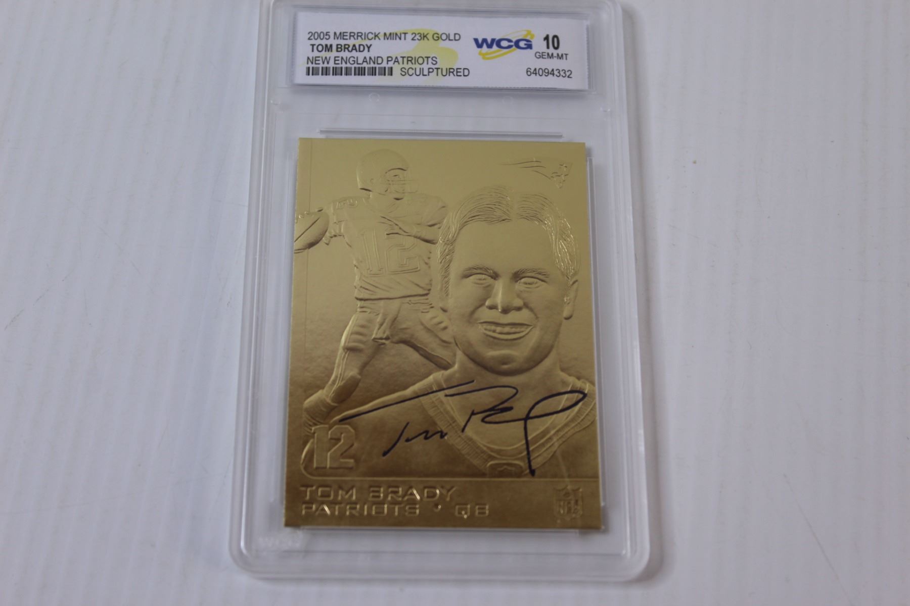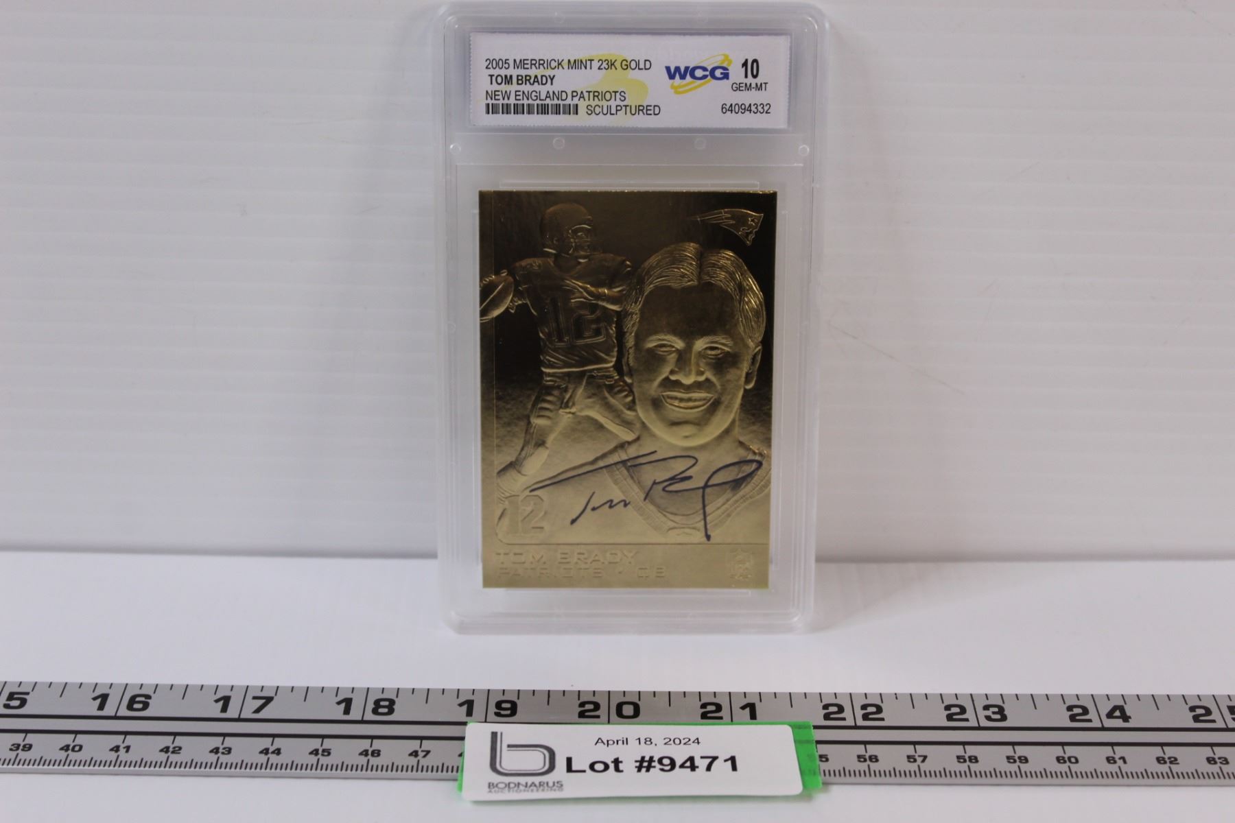 Tom Brady Patriots NFL 2005 Merrick Sculptured Auto Mint 23KT Gold Graded 10