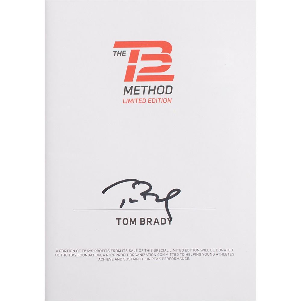 Signed book: The TB12 Method. First edition. NY: Simon & Schuster, 2017. Hardcover with slipcase, 8.5 x 11, 305 pages. Signed on the colophon in black felt tip by Tom Brady. In very fine condition.