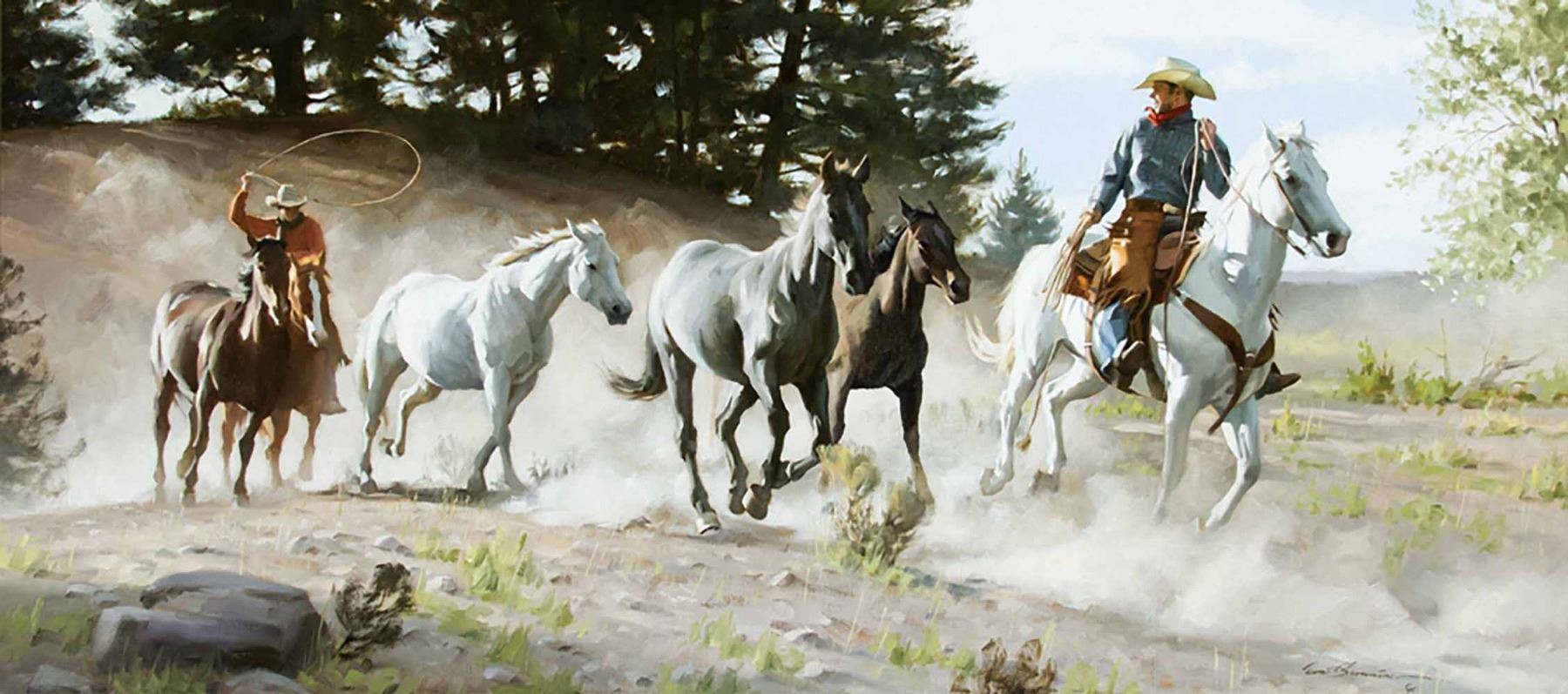 Artist: Tom Browning. Artist Birth: 1949. Signed/CA lower right. Verso: Signed and titled. Dimensions: 22 x 48 inches. Shipping: 31x57. Oil on board