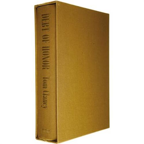 <B><B>Tom Clancy, <I></B></I><B><I>Debt of Honor</B></I></B></I><B>,</B></I></B></I><B> Signed Limited Edition</B></I></B></I> (New York: Putnam's Sons, 1994). Large 8vo. Cloth boards, in a gold cloth slipcase. In unopened shrinkwrap. One of 450 copies (exact number unknown since wrapping has never been opened). Mint.<BR><BR><BR><BR>One of the most popular American authors of suspense thrillers, Mr. Clancy's amazing first book was the very successful <I><I>The Hunt for Red October</B></I>,</B></I> featuring the character Jack Ryan; was later made into a blockbuster movie of the same name. This book, <I><I>Debt of Honor</B></I></B></I> is one of nine books written around the Jack Ryan or John Clark characters. <BR><BR><BR><BR><b>Shipping:</b> Books & Catalogs (<a target="_blank" href="http://www.heritageauctions.com/common/shipping.php">view shipping information</a>)