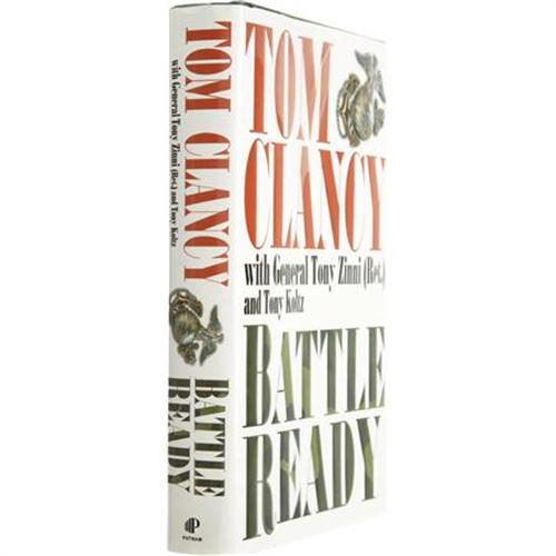 <B>Tom Clancy: Signed </B></I><B><I>Battle Ready</B></I></B></I> (New York: G. P. Putnam’s Sons, 2004), first edition, 450 pages, green binding with cloth spine and gold lettering, 8vo (9.25” x 6”), dust jacket (in protective sleeve). In <I>Battle Ready</B></I>, Clancy switched his focus from the historical Cold War to the current turmoil in the Middle East. The half-title page is signed <I>“Tom Clancy”</B></I>.<I> </B></I>The book is in very good condition with minor wear on the spine; the dust jacket is fine.<BR><BR><b>Shipping:</b> Books & Catalogs (<a target="_blank" href="http://www.heritageauctions.com/common/shipping.php">view shipping information</a>)