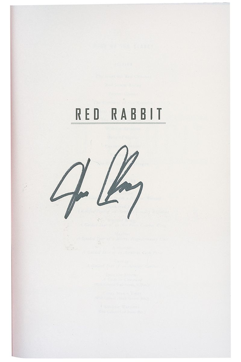 Signed book: Red Rabbit. First edition, first printing. NY: G.P. Putnam’s Sons, 2002. Hardcover with dustjacket, 6.25 x 9.25, 618 pages. Signed on the half title page in black felt tip. In fine condition.