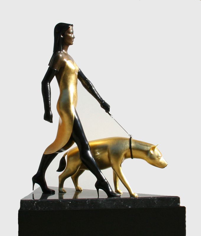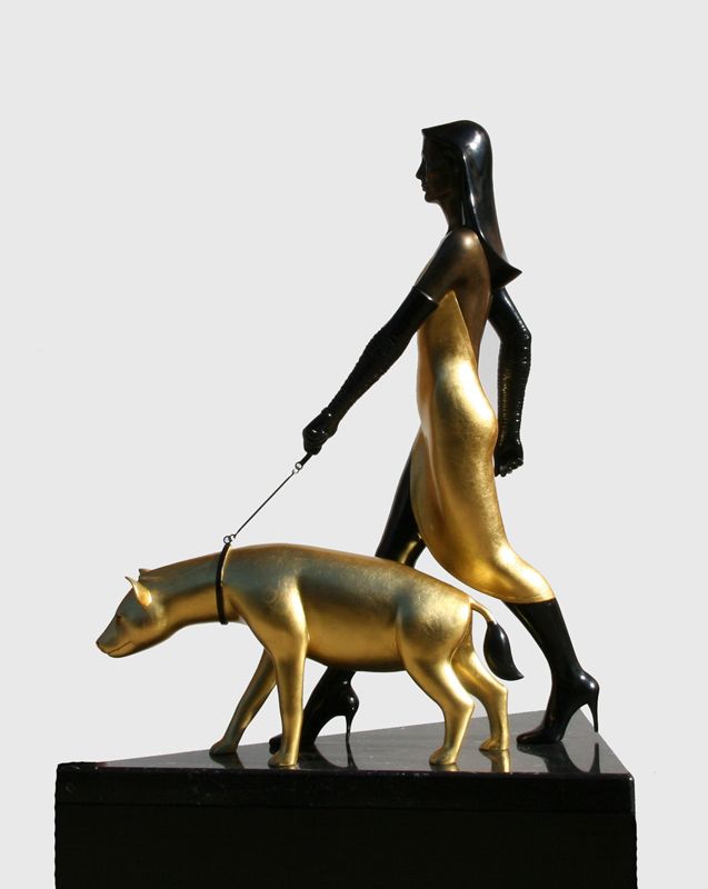 Tom Coffin, Walking the Dog, Bronze Sculpture