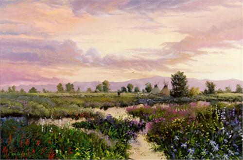 Tom De Decker (b. 1951). Plain's Sunset. 24" x 36" oil on board. Signed lower left. (est $7,000-8,000)