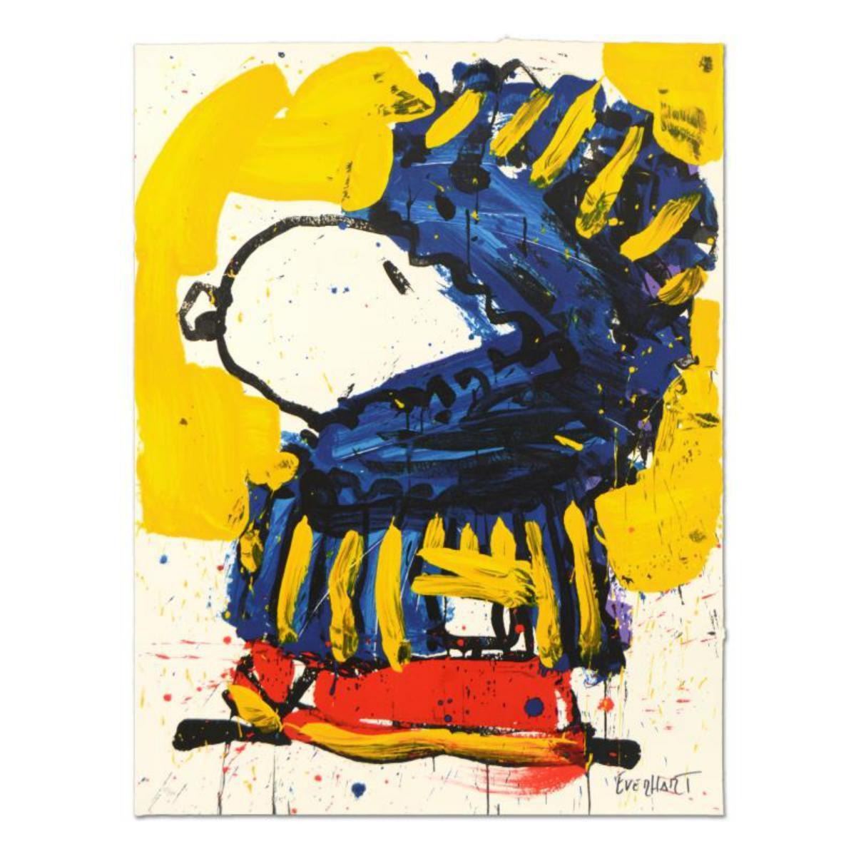 Artist: Tom Everhart. Medium: Hand Pulled Original Lithograph. Title: March Vogue. Size (Unframed): 30" x 22.5". Certificate of Authenticity: Is included. Additional: Tom Everhart is the only artist with full creative rights to the "Peanuts" characters created by Charles M. Schulz (November 26, 1922 –February 12, 2000). In 1980 Tom graduated from the School of Art and Architecture at Yale University. He got a freelance job drawing renderings of Charles Schulz's characters. Everhart began working with "Peanuts" imagery exclusively. His first show was at the famous Louvre Museum in January 1990. In 1991, Charles Schulz and United Media, drafted a legal agreement allowing Tom exclusive rights to use subject matter from Schulz's "Peanuts" strip in his art for "the term of his life". "Peanuts" is the most popular and influential strip in the history of the genre, and ultimately earned Schulz over $1 billion during his lifetime. His decision to tap Everhart as the sole steward of his creation is an honor that the artist has happily devoted his life to.. Reference# 11203.