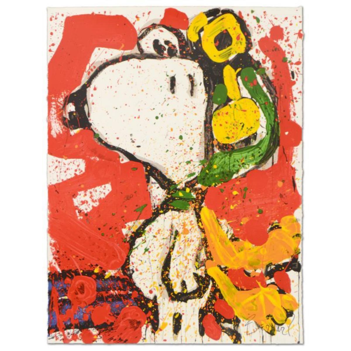 Artist: Tom Everhart. Medium: Hand Pulled Original Lithograph. Title: To Remember…. Size (Unframed): 30" x 22.5". Certificate of Authenticity: Is included. Additional: Tom Everhart is the only artist with full creative rights to the "Peanuts" characters created by Charles M. Schulz (November 26, 1922 –February 12, 2000). In 1980 Tom graduated from the School of Art and Architecture at Yale University. He got a freelance job drawing renderings of Charles Schulz's characters. Everhart began working with "Peanuts" imagery exclusively. His first show was at the famous Louvre Museum in January 1990. In 1991, Charles Schulz and United Media, drafted a legal agreement allowing Tom exclusive rights to use subject matter from Schulz's "Peanuts" strip in his art for "the term of his life". "Peanuts" is the most popular and influential strip in the history of the genre, and ultimately earned Schulz over $1 billion during his lifetime. His decision to tap Everhart as the sole steward of his creation is an honor that the artist has happily devoted his life to.. Reference# 11201.