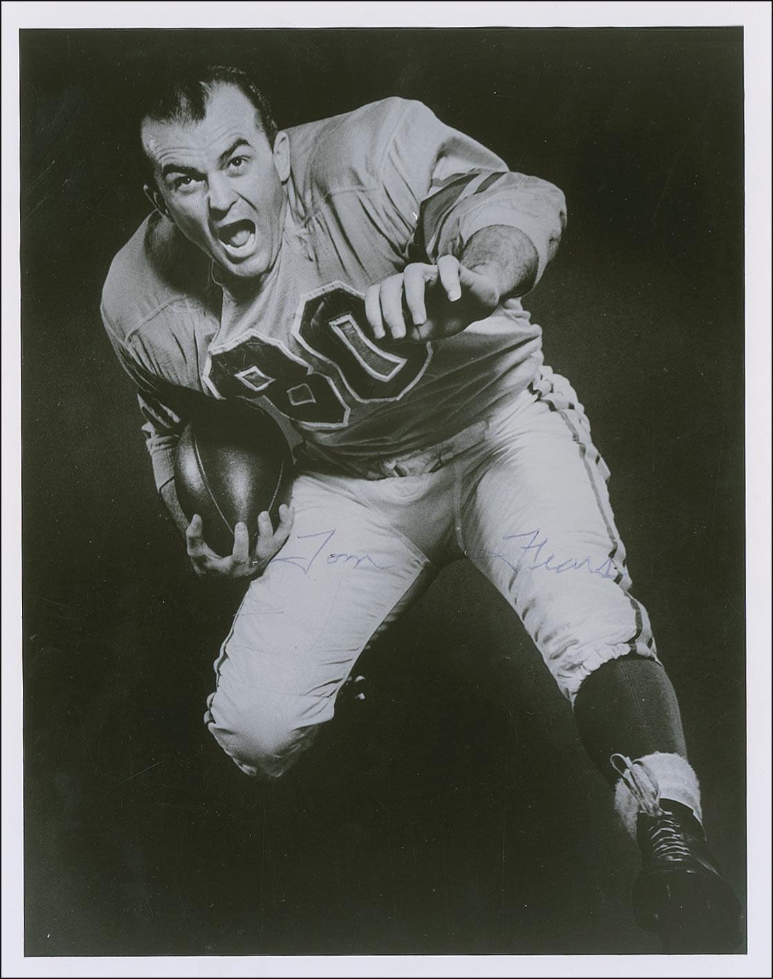 Pro and College Football Hall of Famer (1922–2000). Menacing glossy 8 x 10 photo of Fears in his Rams uniform, signed in blue ballpoint. In fine condition, with signature a shade or two light.