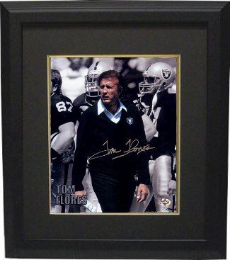 Tom Flores was the NFL's first minority head coach to win a Super Bowl, winning twice - Super Bowl XV with the Oakland Raiders and Super Bowl XVIII with the Los Angeles Raiders, the latter victory being the only such in the history of NFL football in Southern California. His 83 wins with the Raiders are the second-most in franchise history, behind only Madden. Flores left Pro Football with a lifetime coaching record of 97–87 (52.7%), as well as an 8-3 playoff record, and with two Super Bowl victories. Tom Flores has hand signed this Oakland Raiders 8x10 Photo. The photo was signed 11/24/07 in San Francisco, CA. RS Hologram and Certificate of Authenticity from Athlon Sports. Custom Black Mat and Premium Black Frame as shown