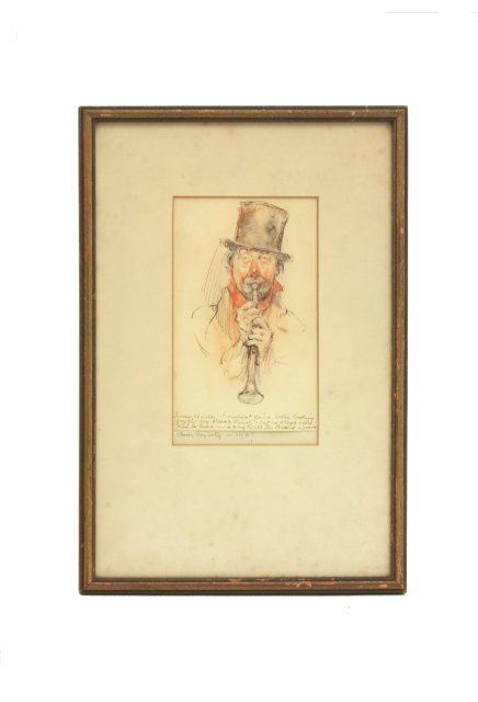 Pen & ink illustration. Framed. Signed & dated 1937 lower left. Tom Fogarty, American, (1873-1938). Approx. 6" x 3.5" unframed, 12" x 8" framed. Good condition.