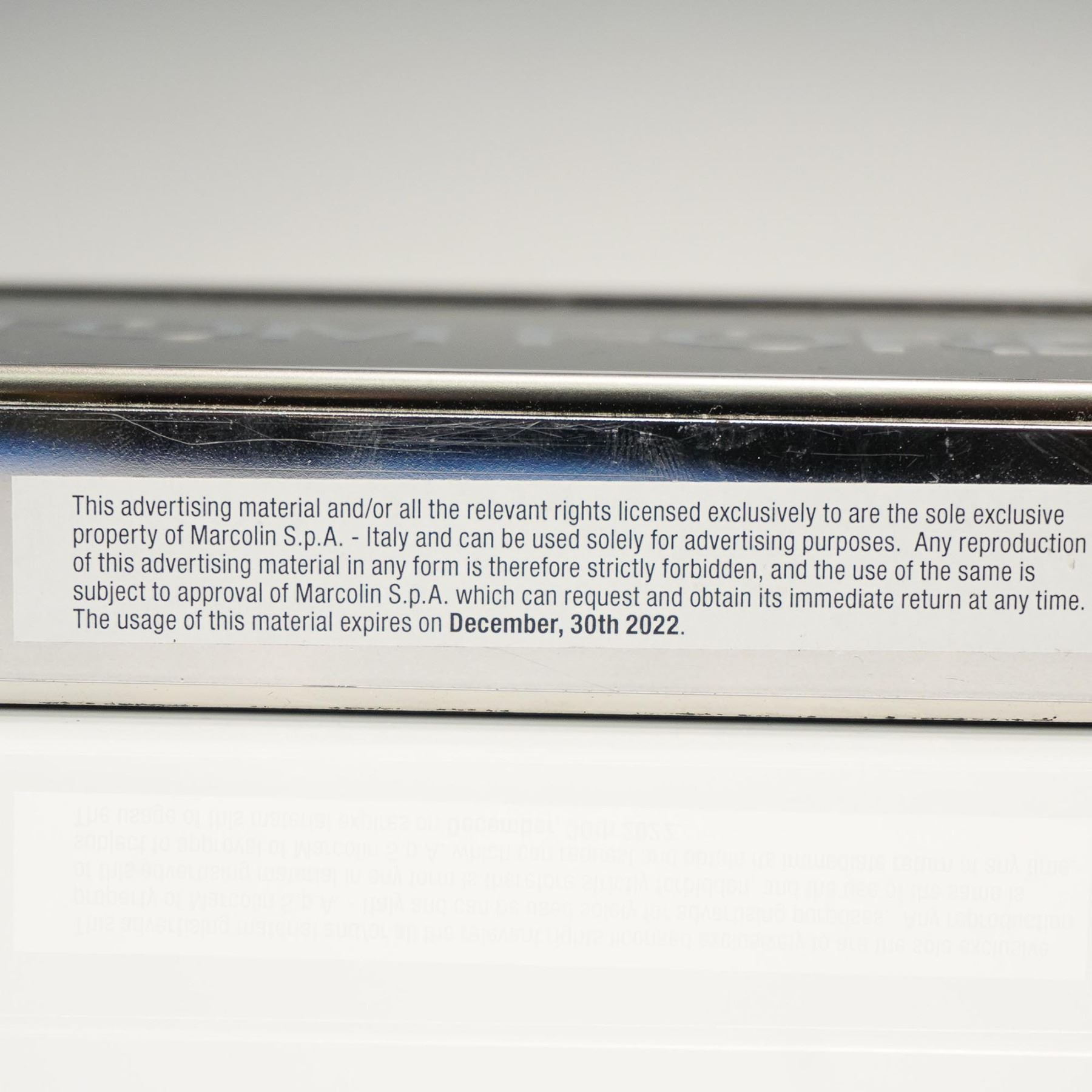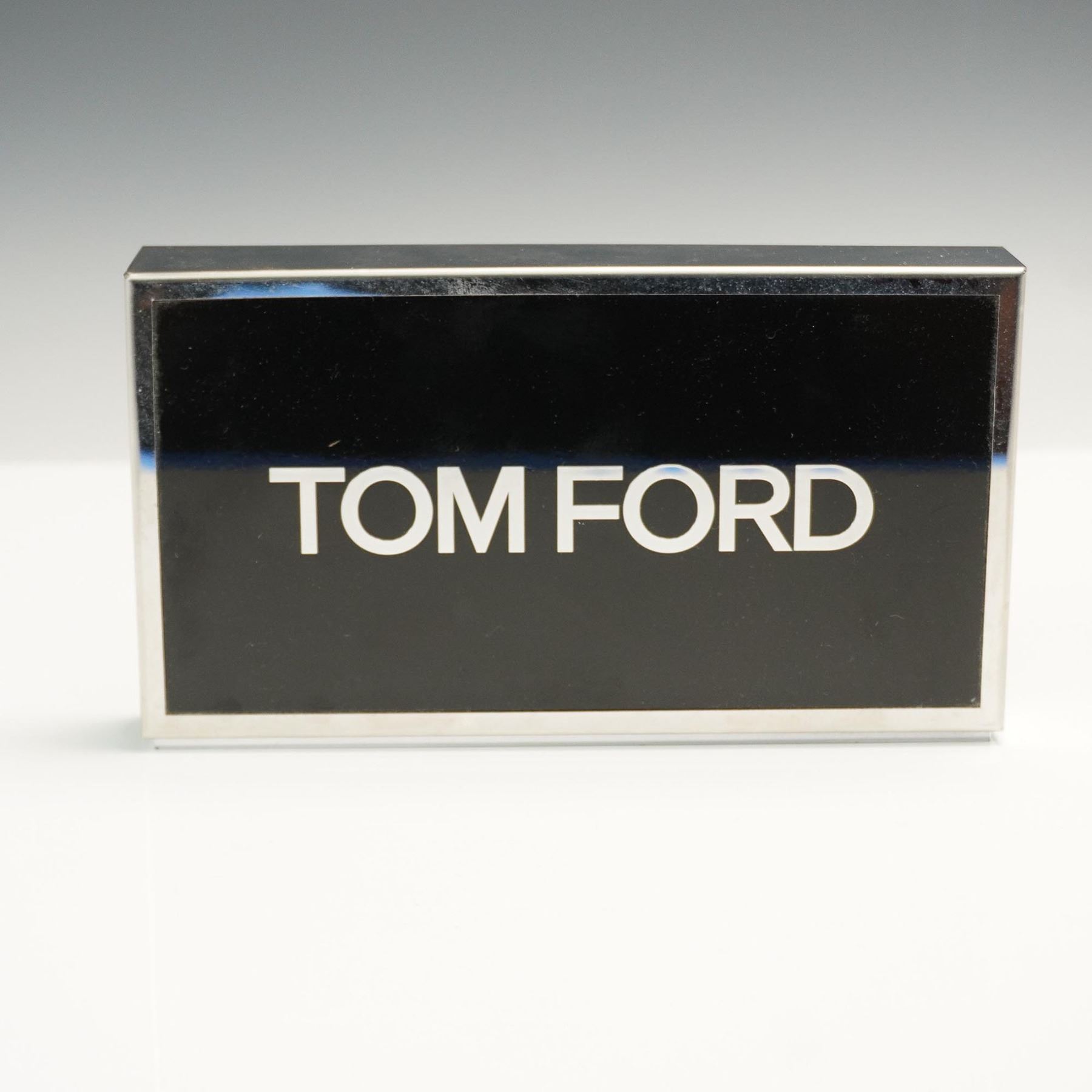 Branded Tom Ford acrylic display block that features a sleek black front with bold white Tom Ford lettering, encased in clear acrylic. According to the back label, this item was authorized for display use through December 30th, 2022, and remains a collectible piece of promotional branding.