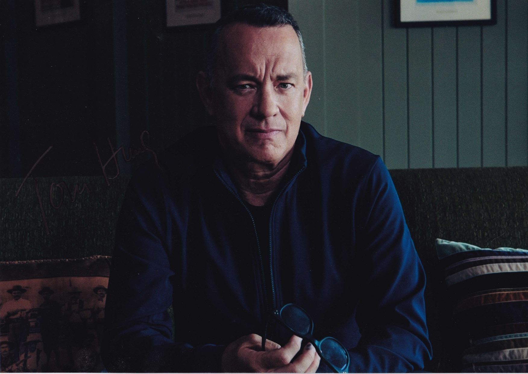 Tom Hanks signed photo. 11.75x8.25 inches. Mounted and framed. Supplied with coa.