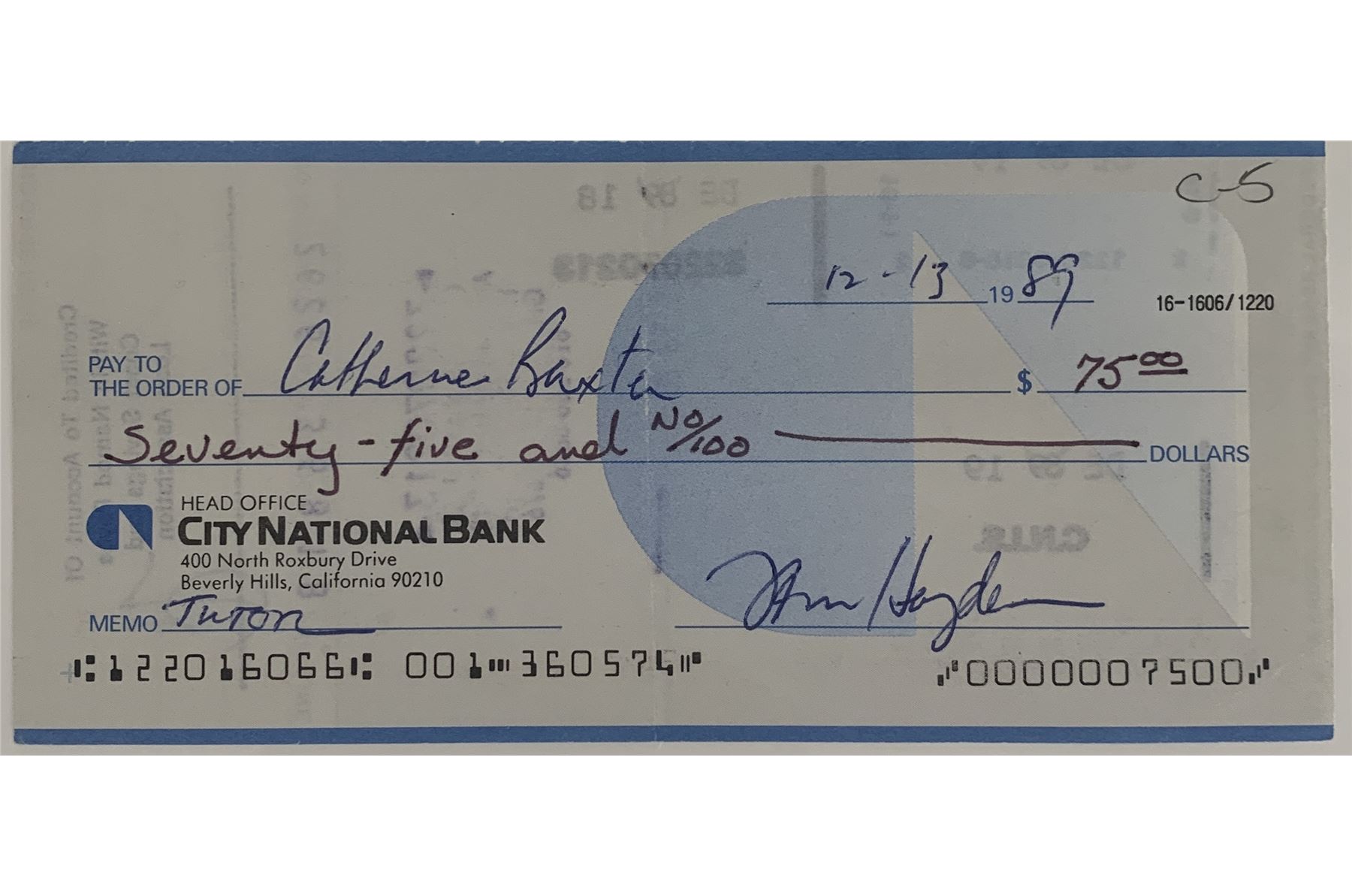 Tom Hayden signed check