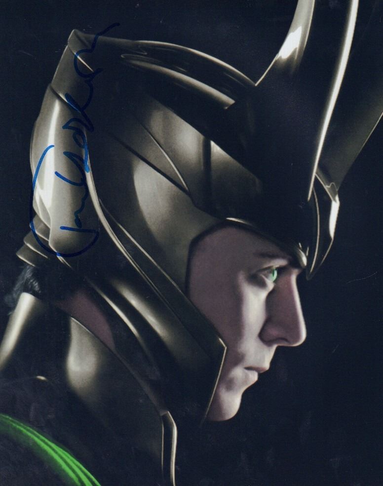 A 8x10 Marvel photo signed by Tom Hiddleston