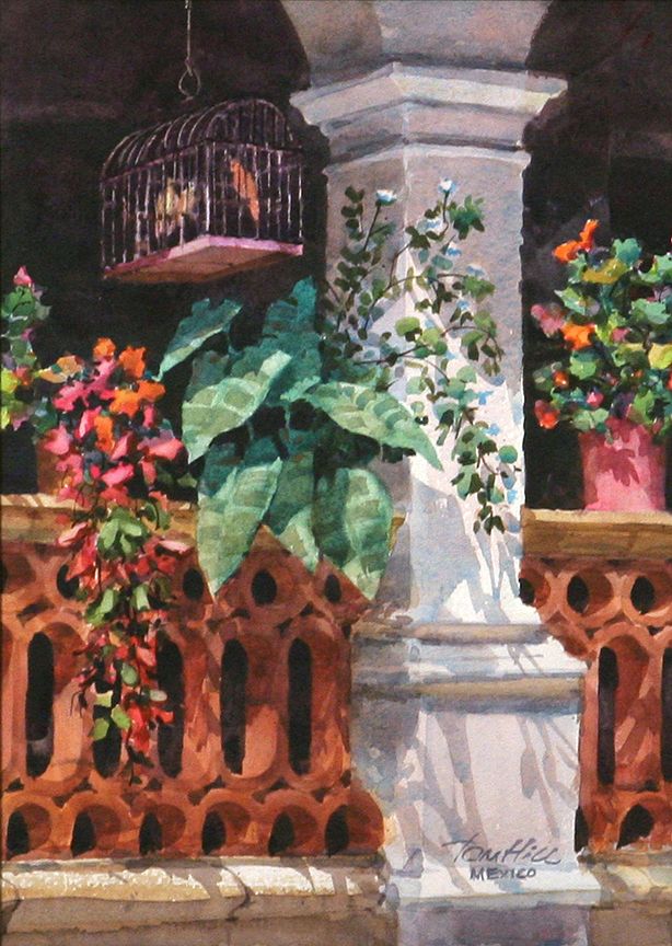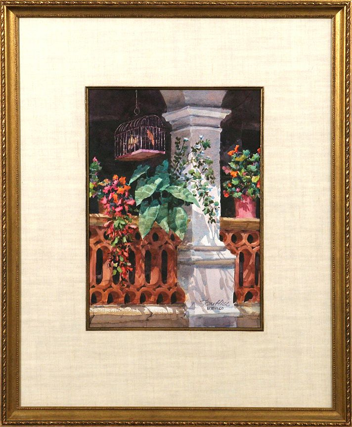 Thomas Hill (b. 1925). Taxco Balcony, Mexico. 13 ½" x 10 ¾" watercolor. Signed right: Tom Hill, MEXICO. (est. $1,000-2,000). CONDITION REPORTS: www.auctioninsantafe.com/docs/cr2012.pdf