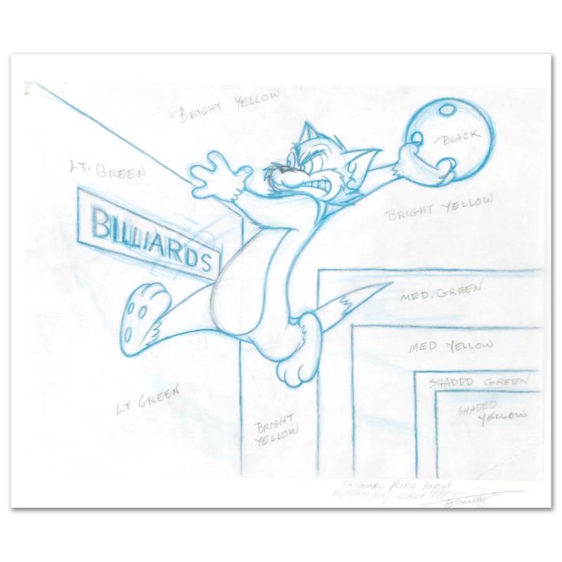 "Tom & Jerry" is an original pencil layout on paper circa 1990's by the renowned animator and cartoon director, Tom Ray (1919-2010)! This piece is hand signed by his widow, Brenda Ray. Measures approx. 12.5" x 10.5" (no border).