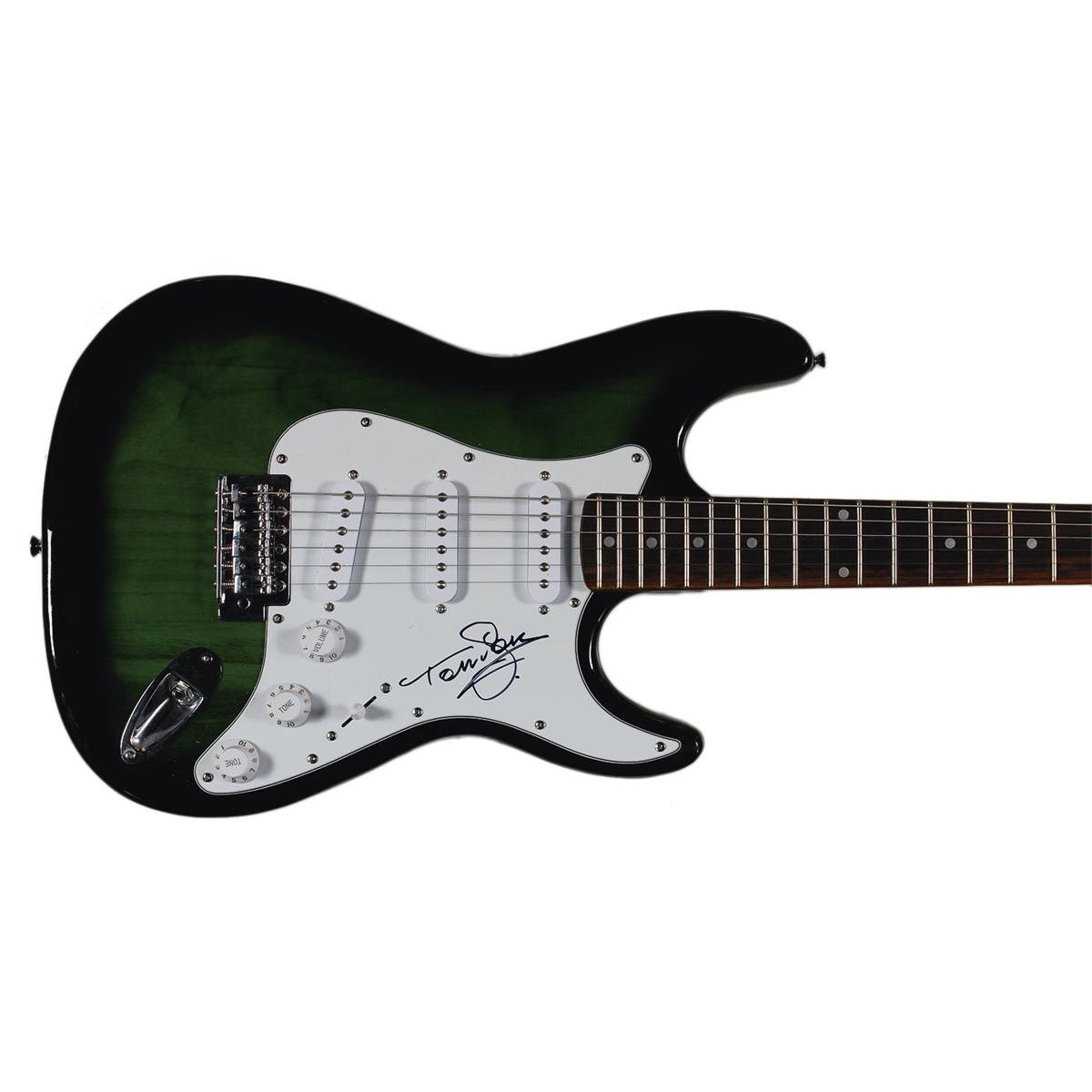 Green sunburst-finish Stedman Pro ‘stratocaster-style’ electric guitar, signed on the white pickguard in black felt tip. In fine condition. Oversized.