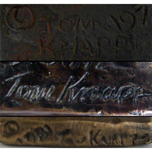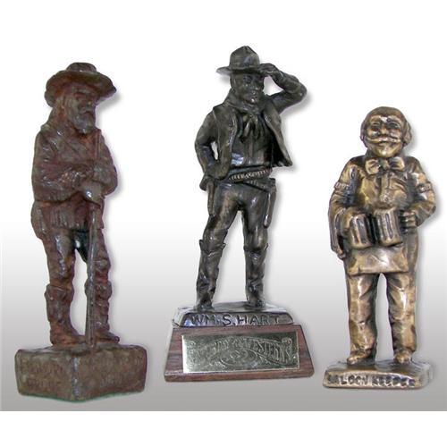 Tom Knapp (b.1925) (Wyoming) 3 Bronzes, "Mountain Man", Foundry Proof, 1971, 5 1/2" x 1 1/2" x 1 1/2", "William S. Hart", #24/100, 1992, 4 3/4" x 1 7/8" x 1 7/8", "Saloon Keeper", 1981, 4 1/2" x 1 5/8" x 1 1/2", signatures inscribed