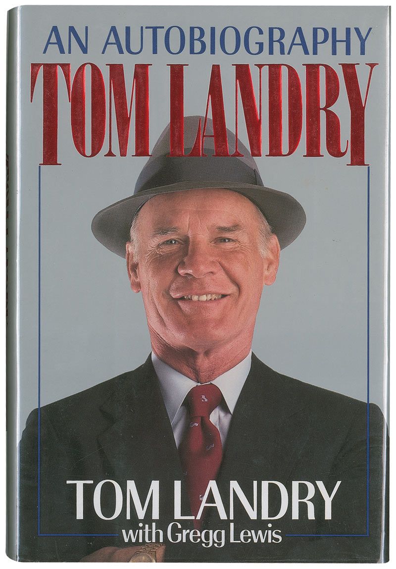 Signed book: Tom Landry: An Autobiography. Later printing. NY: HarperCollins, 1990. Hardcover with dustjacket, 6.5 x 9.5, 302 pages. Signed and inscribed on the first free-end page, “To the Thornton family, Best Wishes, Tom Landry.” In fine condition.