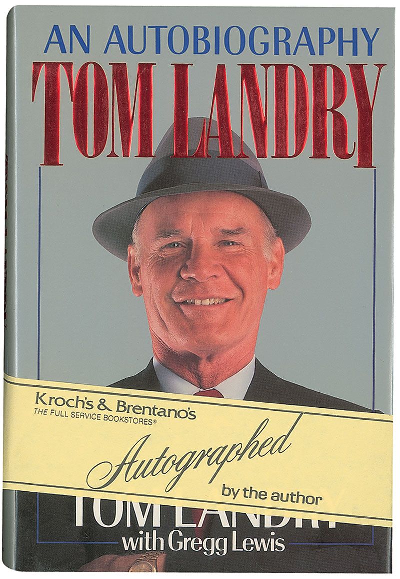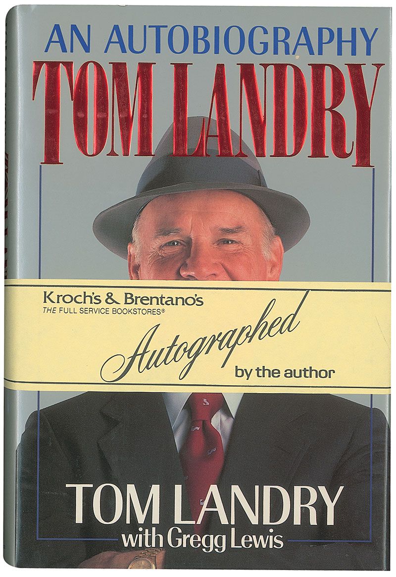 Two hardcover copies of Tom Landry: An Autobiography, each signed on the first free end page in black felt tip. In very fine condition.