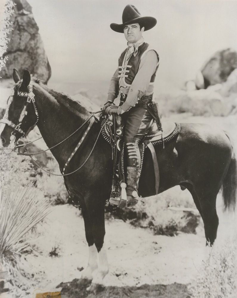 An expansive and wonderful collection of photos and memorabilia about the famous actor and wild west performer Tom Mix compiled by John H. Nicholas writer of the book “Tom Mix – Riding Up To Glory” with a forward by Gene Autry. The archive consists of an album of publicity photographs, movie stills, clippings, and research material, 47 8”x 10” original photos, numerous early mimeographs of newspaper storys. Included is a copy of Nicholas’ book. A second book of photos and cards, a very early original image of Mix most likely from his Wild West days with the Miller Bros. 101 Ranch or with Seth Bullock’s Cowboy Brigade that appeared at Teddy Roosevelt’s second inauguration. Photos of Mix in the hospital and a card he sent out when he got out. 3 large portrait photos of Mrs. Tom Mix are included along with a photo of Ruth & Thomasina. A very interesting collection of material.