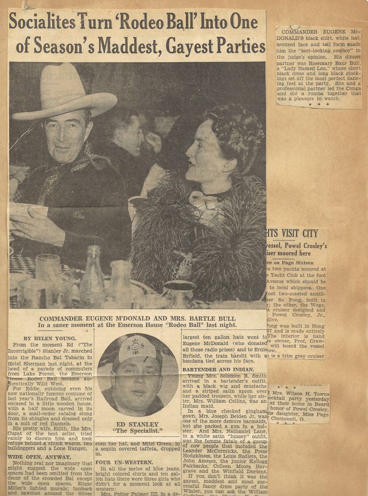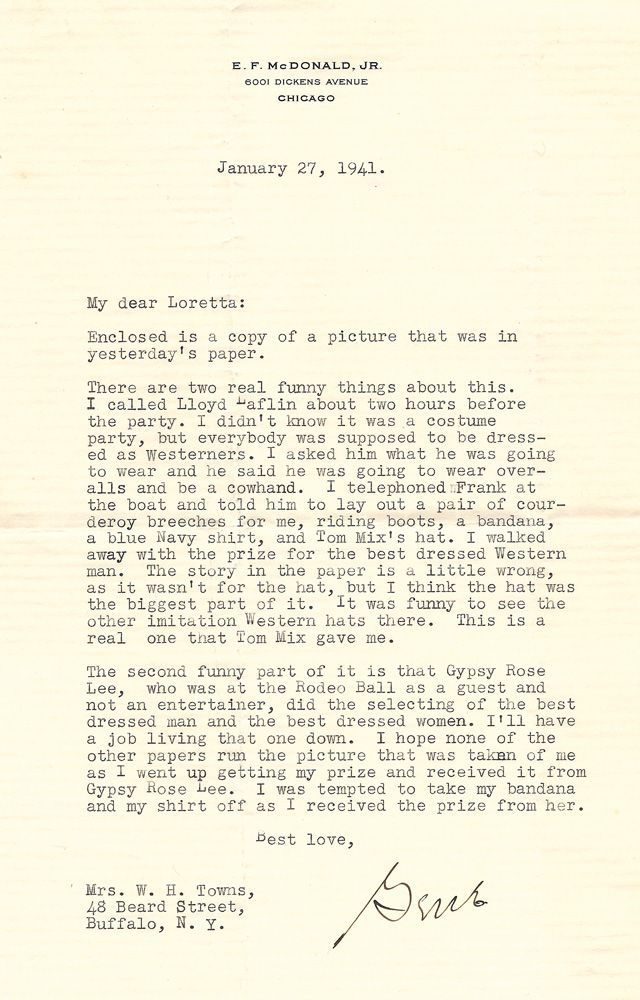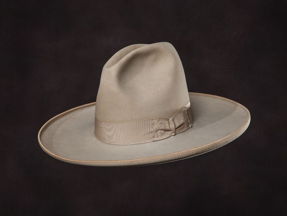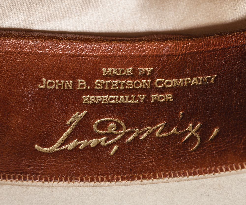 One of Tom's personal, custom-made Stetsons. Marked inside the hat "Made Especially for Tom Mix." Mix gifted this hat to his friend, Commander Eugene McDonald, founder of Zenith Radio. Letters, cards, and newspaper articles relating to McDonald included in lot.