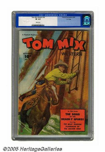 <B>Tom Mix Western #9 File Copy (Fawcett, 1948) CGC VF 8.0 White pages.</B></I> Overstreet 2005 VF 8.0 value = $164. CGC census 3/05: 2 in 8.0, 1 higher.