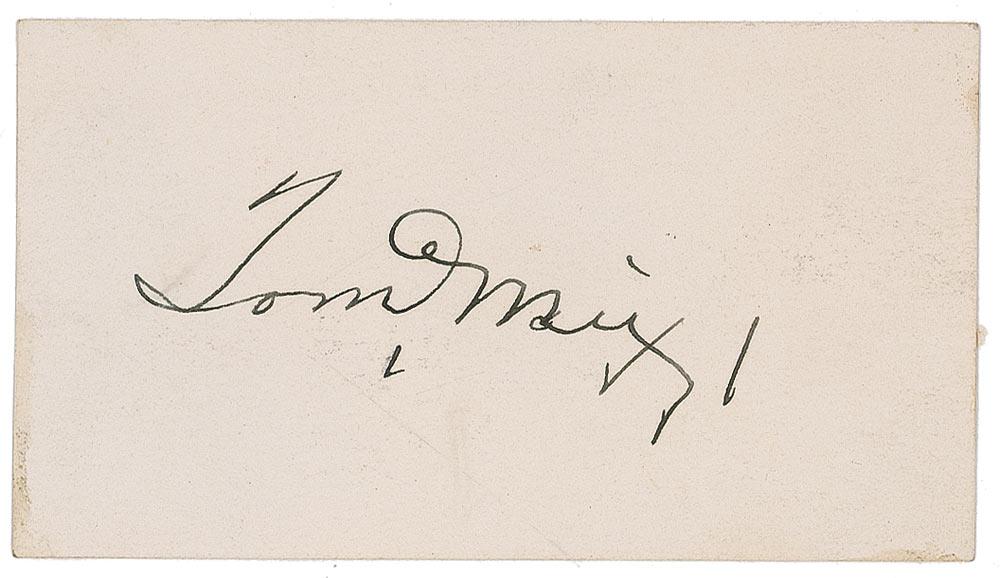 Attractive fountain pen signature, “Tom Mix,” on an off-white 3.5 x 2 card. In fine condition.
