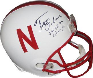 This is a Riddell full size replica helmet which has been personally autographed by Tom Osborne and as you can see he added "94 95 97 Champs". Widely considered one of the greatest collegiate coaches of all-time and in 2007 he was named by ESPN the greatest coach of all-time. He lead the Huskers for 25 seasons from 1973-1997 and during that time had an outstanding record of 255-49-3 and won three national championships in 1994, 1995 and 1997. Tom Osborne has hand signed this Nebraska Cornhuskers Full Size TB Replica Helmet with 94 95 97 Champs inscription. Schwartz Sports Hologram and certificate of authenticity from Athlon Sports.