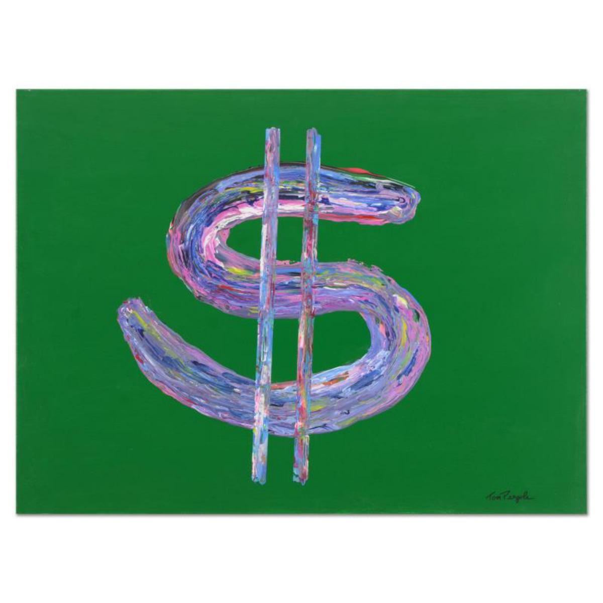 "The Almighty Dollar" is an original mixed media on canvas by Tom Pergola, hand signed by the artist. This piece cones gallery wrapped. Includes Certificate of Authenticity. Measures approx. 40" x 30" (image). Reference #: 237609