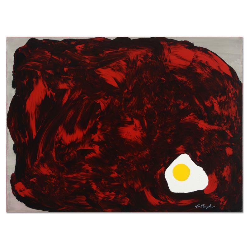 "The Sunny Side Up" is an original mixed media on canvas by Tom Pergola, hand signed by the artist. This piece comes gallery wrapped. Includes Certificate of Authenticity. Measures approx. 40" x 30" (image).