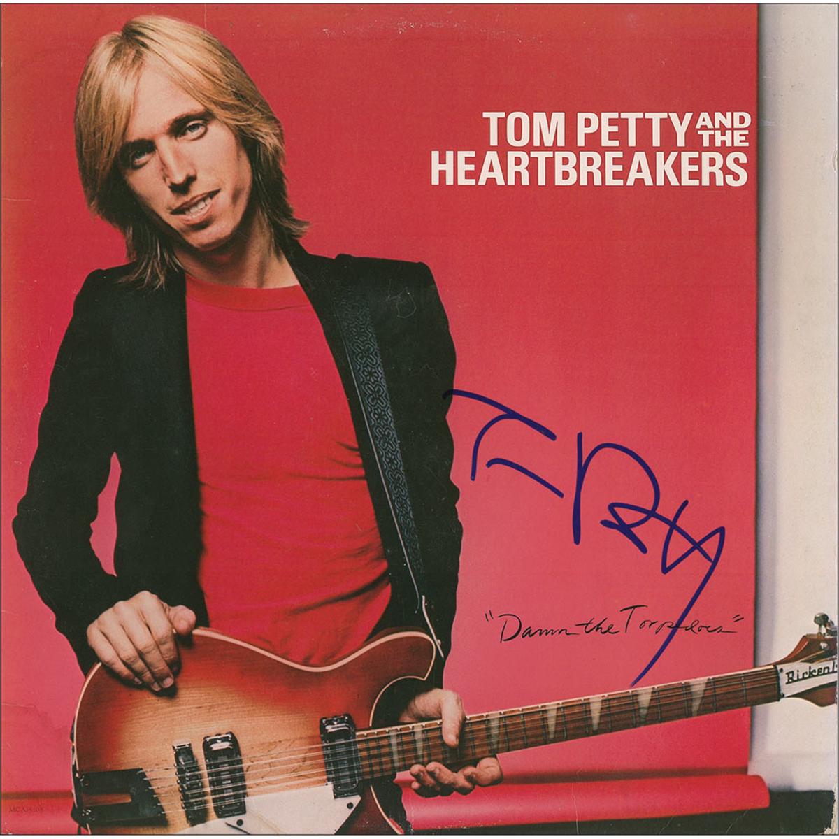 Damn the Torpedoes album signed on the front cover in blue felt tip. In fine condition, with some scattered surface marks and impressions and some edge dings. The record is included.